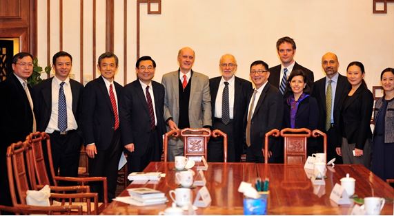 President of the Brookings Institution, Strobe Talbott, visited Tsinghua University on October 22nd. Tsinghua University Council Chair Hu Heping, held discussions with Mr. Talbott during his visit, together with Deputy Director of Tsinghua’s Office for International Cooperation and Exchanges Xia Guangzhi, Dean of Tsinghua’s School of Public Policy and Management (SPPM) Xue Lan, Associate Dean of the SPPM Meng Bo, and acting Director of the Brookings-Tsinghua Center for Public Policy Tao Ran.