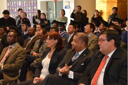 Associate Dean Ms. Meng Bo, as the host, warmly welcomed all the attendees and congratulates all the graduates. Then Professor Wu Yongping, Associate Dean, also the Chairman of the School Sub-degree Committee announced the degrees conferred this semester. Huang Gaoping, on behalf of all the graduates delivered a 5-minute speech. He recalled his learning journey in SPPM and expressed his sincere appreciation to the school. Two alumni were invited to share their experience and advices in professional careers with the new graduates. Mr. Ralph Thomas, Ambassador of Jamaica, also delivered a speech in the ceremony.