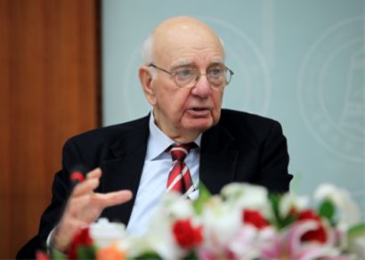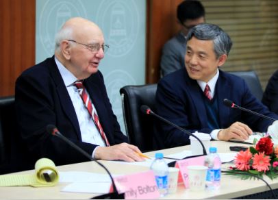On February 24th, Mr. Paul A. Volcker, the former Chairman of the Federal Reserve visited the School of Public Policy and Management. A roundtable meeting themed of Monetary Policy of the Federal Reserve and the International Monetary System in the Post Financial Crisis Era was held in the school. Professor Xue Lan, Dean of SPPM moderated the discussion.