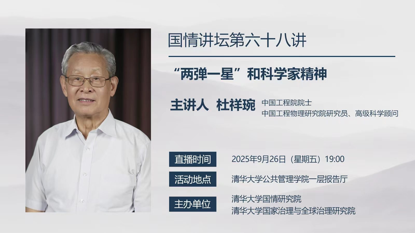 国情讲坛第68讲:“两弹一星”和科学家精神(2025年9月26日 星期五 19:00)