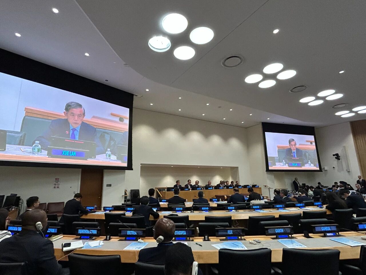 当地时间9月23日,国务院总理李强在纽约联合国总部出席由中方主办的全球发展倡议高级别会议并致辞。联合国秘书长古特雷斯、哈萨克斯坦总统托卡耶夫、伊拉克总统拉希德、安哥拉总统洛伦索、安提瓜和巴布达总理布朗、巴基斯坦总理夏巴兹、尼日尔总理泽内以及30多国部长级官员、国际组织负责人与会。清华大学公共管理学院教授、苏世民书院院长薛澜受邀出席此次高级别会议并在圆桌讨论环节发言。