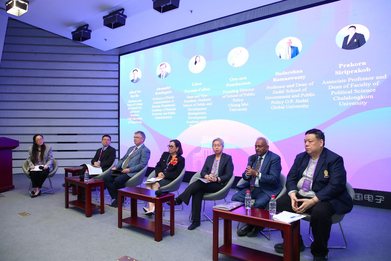 圆桌论坛由清华公管学院副院长钟玮副教授主持。六位嘉宾围绕公共管理教育的经验分享与未来举措展开建设性对话。参与嘉宾包括中国香港城市大学人文社会科学学院院长与教授、全球治理与共享未来创新研究院主任何达基,俄罗斯总统国民经济和公共管理学院教授、AAPA资深副主席Alexander Kotchegura,菲律宾发展学院副校长、公共与发展管理研究生院院长与教授Lizan Perante-Calina,泰国清迈大学公共政策学院创始院长Ora-orn Poocharoen,印度金达尔全球大学政府与公共政策学院院长与教授Sudarshan Ramaswamy,以及泰国朱拉隆功大学政治学系院长与副教授Prakorn Siriprakob。