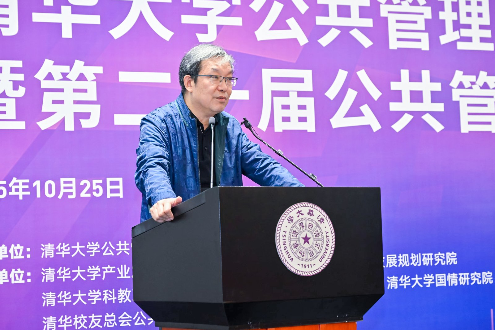 10月25日,清华大学公共管理学院建院25周年专题活动举行。校党委副书记过勇,校务委员会副主任杨斌,校党委原书记方惠坚,国务院公共管理学科评议组联合召集人、电子科技大学公共管理学院特聘院长、武汉大学“珞珈学者”特聘教授丁煌,清华大学文科资深教授、清华大学国情研究院名誉院长胡鞍钢,清华大学文科资深教授、清华大学苏世民书院院长薛澜等出席活动。公共管理学院党委书记彭宗超主持活动。