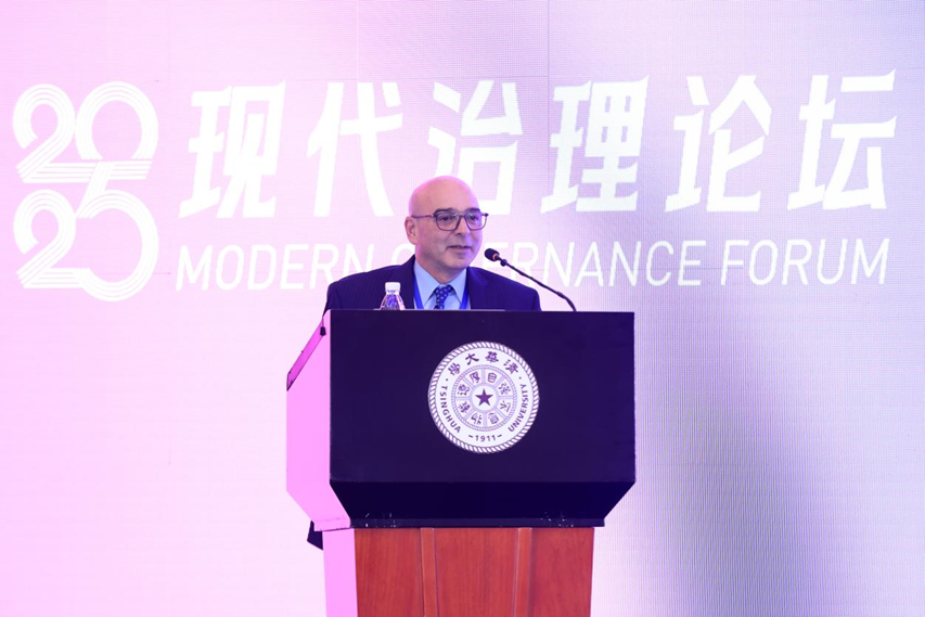 主旨发言环节由美国康涅狄格大学公共政策学院教授、美国国家公共行政学院院士穆罕默德·阿尔卡德里(Mohamad G. Alkadry)主持。中金公司原总裁兼首席执行官朱云来,美国加州大学圣地亚哥分校全球政策与战略学院苏君乐中国国际事务讲席教授巴里·诺顿(Barry Naughton),法国巴黎政治大学校长路易斯·瓦熙(Luis Vassy)分别围绕公共治理的全球挑战、当前时代的全球治理、为变革中的世界造就治理人才等进行分享。