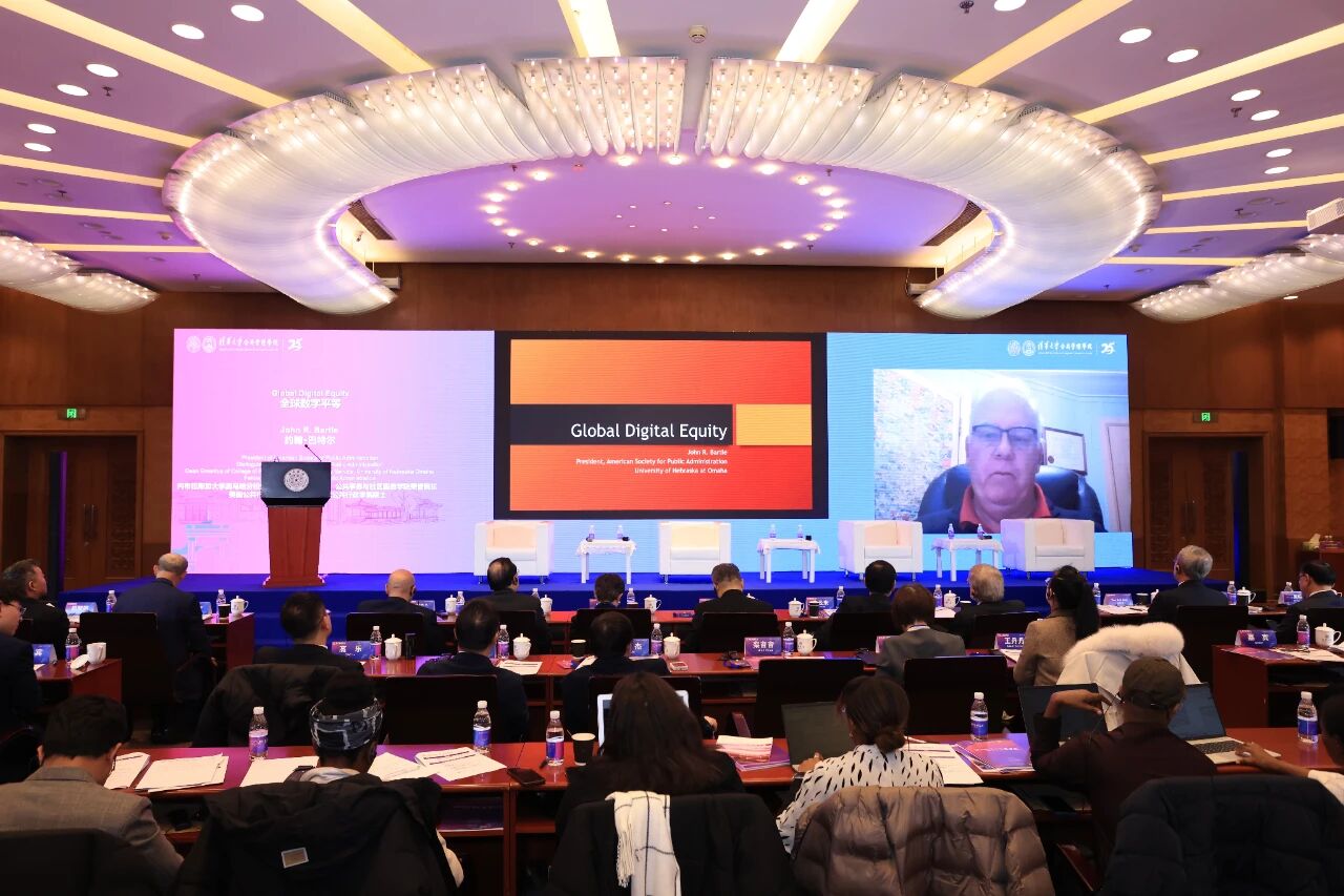 论坛二以“治理数字化转型与全球数字公平”为主题,由清华大学公共管理学院教授、新雅书院院长,《公共管理评论》副主编兼编辑部主任梅赐琪主持。美国内布拉斯加大学奥马哈分校公共管理学院杰出教授、公共事务与社区服务学院荣誉院长,美国公共行政学会主席,美国国家公共行政学院院士约翰·巴特尔(John R. Bartle)围绕“全球数字平等”作线上发言。他表示,数字平等的核心是在数字资源方面人人享有平等的自由与机会,并且弱势群体的权利应得到最大限度的保障。政府的责任是提供免费的基本数字服务,可以通过税收或者提供高水平的服务获得收益,以补贴免费服务和保障弱势群体数字权利,实现数字平等。
