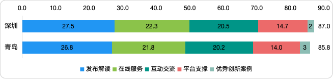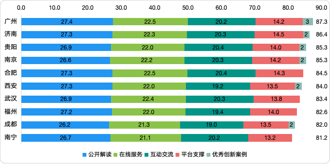报告从公开解读、在线服务、互动交流、平台支撑和优秀创新案例等5个方面开展调查研究。发展水平较为领先的网上政府(网上政府)情况如下: