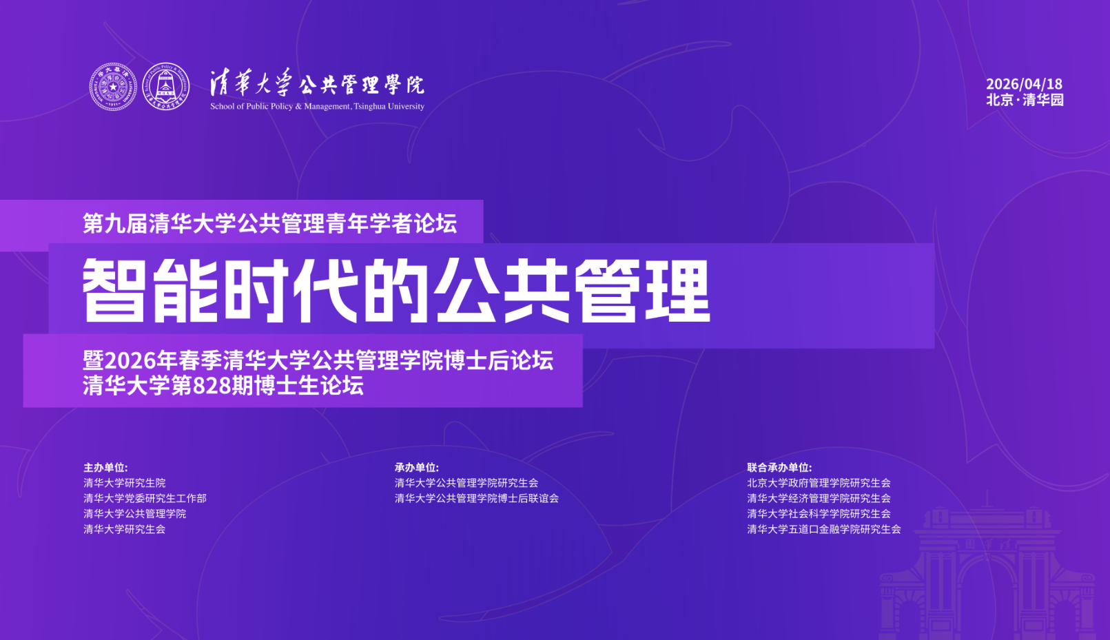 4月18日,在清华大学即将迎来建校115周年之际,第九届清华大学公共管理青年学者论坛暨 2026 年春季清华大学公共管理学院博士后论坛、清华大学第 828 期博士生论坛在公共管理学院举行。本届论坛以“智能时代的公共管理”为主题,由清华大学研究生院、清华大学党委研究生工作部、清华大学公共管理学院、清华大学研究生会联合主办。来自全国多所高校的专家学者、期刊主编、青年学者和院友齐聚清华园,围绕智能技术快速发展背景下公共管理学科创新、治理实践变革与青年人才培养等议题展开深入交流。