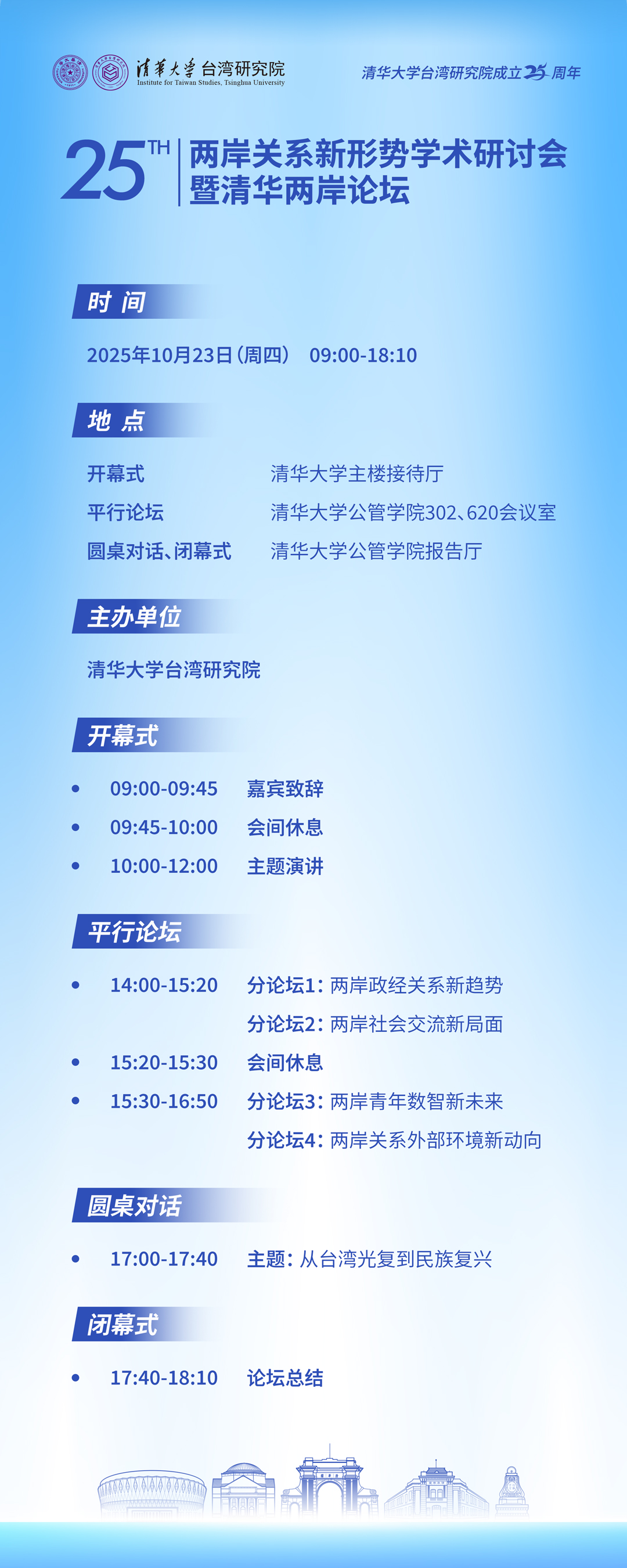 两岸关系新形势学术研讨会暨清华两岸论坛(2025年10月23日 星期四 9:00)