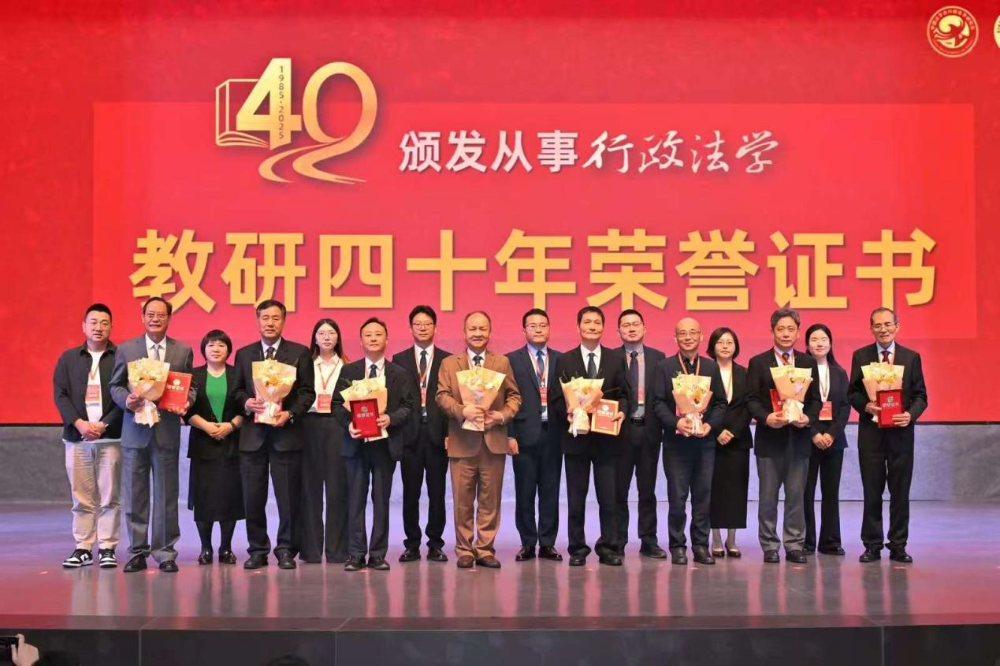 大会宣读并表彰了中国行政法学“终身成就学者”、中国行政法学“杰出贡献学者”,颁发了“从事行政法教研四十年”荣誉证书,宣布了“中国行政法学四十年优秀成果”和“2025年年会优秀论文”,颁发了第十二届“应松年行政法学奖学金”。我院于安教授接受了“从事行政法教研四十年”荣誉证书,并获得中国行政法学“杰出贡献学者”称号。