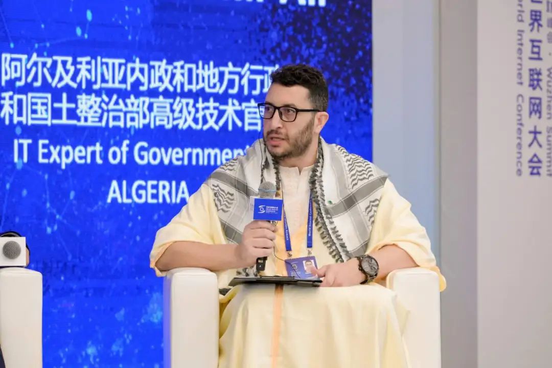 11月21日,2024年世界互联网大会乌镇峰会数字化绿色化协同转型发展论坛在浙江乌镇举行。本次论坛以“数字化绿色化深度融合 加快培育新质生产力”为主题,共有来自信息技术、能源环境、战略研究等多领域的120余位中外嘉宾参会。与会嘉宾围绕论坛主题,共话数字化绿色化协同发展的最新趋势和前沿技术,共推经济社会绿色发展,共建人类命运共同体,共同探讨智能社会背景下的数字化绿色化协同转型发展的方法路径。来自2023级商务部援外教育项目——清华大学国际发展与治理硕士(MIDG)项目的阿尔及利亚地方政府工程师Boukhersa Amir Ali(中文名:王子)应邀参加论坛圆桌对话环节。
