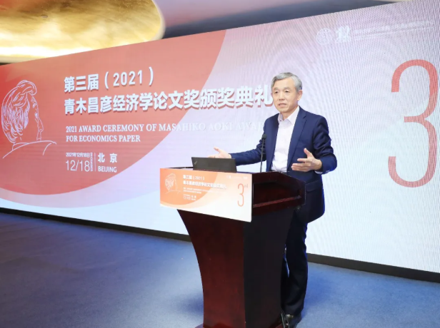 清华大学文科资深教授、苏世民书院院长、青木昌彦经济学论文奖评审委员薛澜揭晓奖项