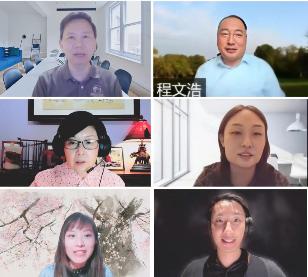 高端讲堂现场(二排左图)、高端讲堂云合影(二排右图)