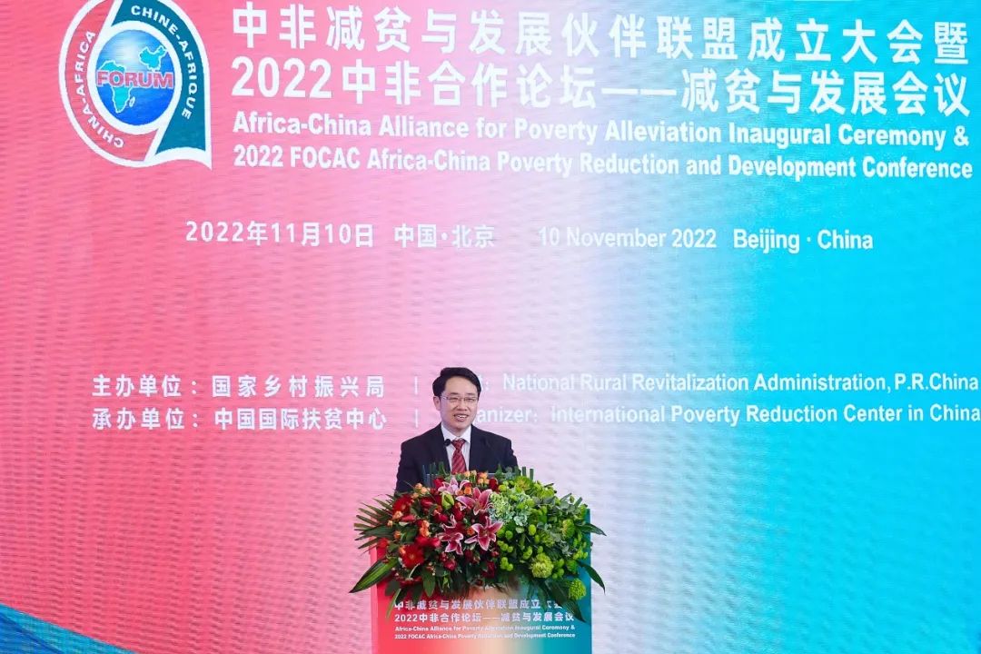 11月10日,由国家乡村振兴局主办、中国国际扶贫中心承办的“中非减贫与发展伙伴联盟成立大会暨2022年中非合作论坛——减贫与发展会议”在北京成功举办。国家乡村振兴局副局长夏更生,中国政府非洲事务特别代表刘豫锡,乌干达农业、牧业和渔业部国务部长布莱特·鲁瓦米拉玛(Bright Rwamirama),非盟驻华代表处常驻代表拉赫曼塔拉·奥斯曼(Rahamtalla M. Osman),联合国发展系统驻华协调员常启德(Siddharth Chatterjee)等嘉宾出席开幕式并致辞。会上还宣读了《中非减贫与发展伙伴联盟成立宣言》。国家乡村振兴局综合司司长许健民主持会议。