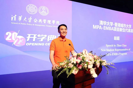 9月1日,清华大学公共管理学院2023年开学典礼在蒙民伟音乐厅隆重举行。23级新生赵超同学代表MPA-EMBA 项目发言。赵超同学提到,他将传承“清华人”务实的特点,谨记“自强不息、厚德载物”的校训,勤而行之,日有所进,践行公共价值和企业家精神,让这个世界变得更加美好,更加和平,更加可持续。