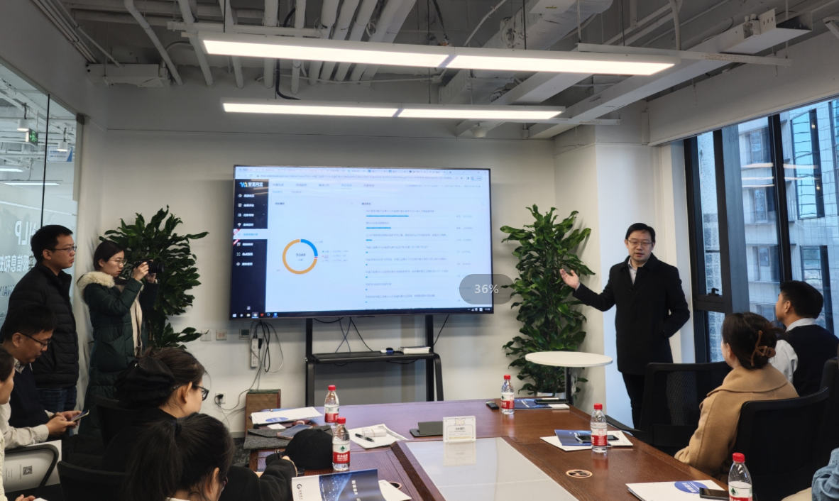 首先,智慧星光市场团队在公司展厅向师生们介绍了公司的发展历程,讲解了现代数字治理对于政府及企业的重要意义,分析了数据价值、数据挖掘、数据利用等方面的新业务、新业态。