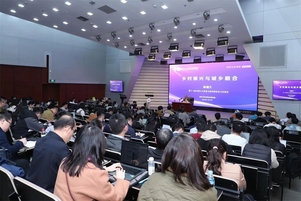11月21日晚,“清华三农讲坛”第四十二讲在清华大学公共管理学院报告厅举行。第十三届全国人大农业与农村委员会主任委员陈锡文作了“乡村振兴与城乡融合”主题演讲。清华大学公共管理学院副院长、中国农村研究院执行院长王亚华教授主持讲坛。