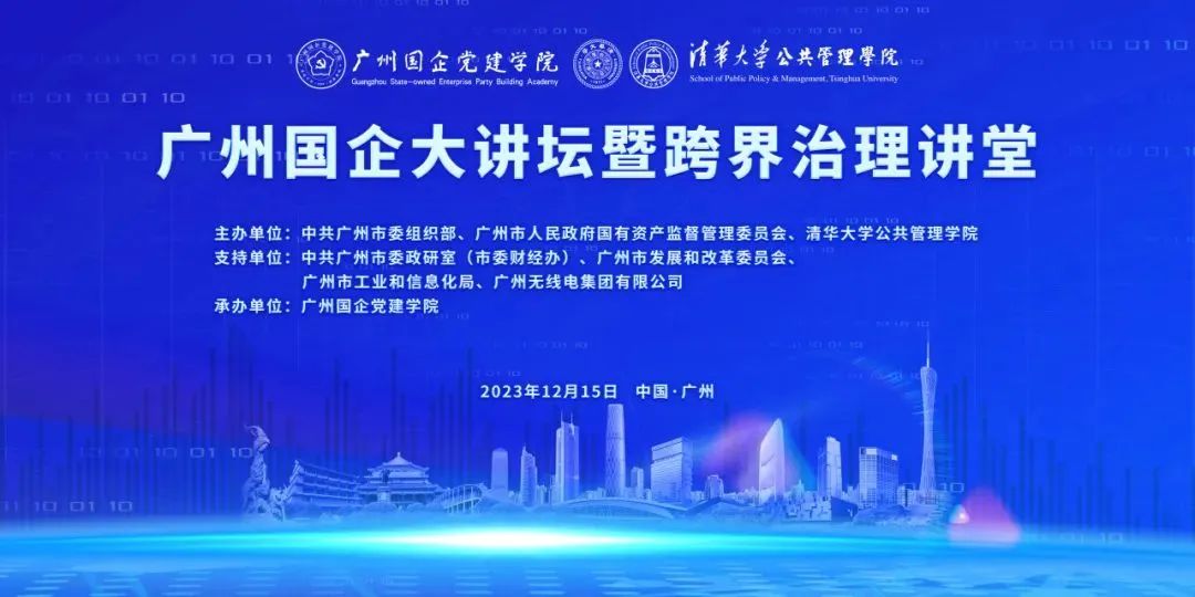 2023年12月15日,由清华大学公共管理学院联合广州市委组织部、市国资委、广州国企党建学院等共同举办的“广州国企大讲坛暨跨界治理讲堂”在广州成功举办。活动邀请中国工业经济学会会长、国务院原副秘书长江小涓教授主旨演讲,广州市政府马曙副秘书长主持活动。