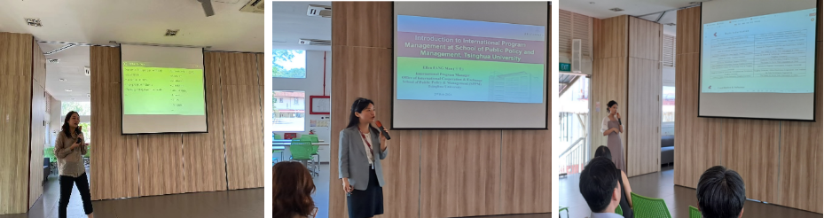 在交流学习的最后一天,杨安安、方曼、程熙慧与李光耀公共政策学院的相关职员们分享了清华大学公共管理学院在教学管理、国际项目管理以及科研项目管理方面的工作内容以及实践活动,并与现场出席人员进行了交流与问答。
