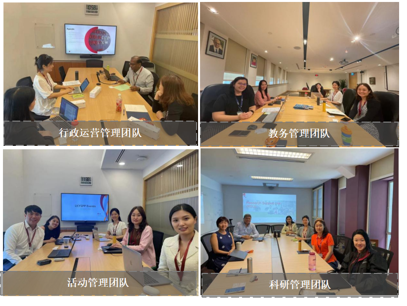 在为期5天的学习交流中,新加坡国立大学李光耀公共政策学院安排了丰富而深入的交流活动。该院邀请了相关部门,包括行政管理团队、运营管理团队、教务管理团队、活动管理团队和科研管理团队分别介绍了该院的历史与发展、组织结构和安全保障、教务及学生管理、各类活动的筹备与管理以及科研项目管理等方面的工作。各团队分享了他们在具体工作中的实践与经验,并就各团队的特色项目与经典案例进行了深入的交流。此次与该院团队多方面的交流探讨不仅使双方的行政人员加深了对彼此工作的了解,更让大家对未来的工作获得了启发,使双方受益匪浅。