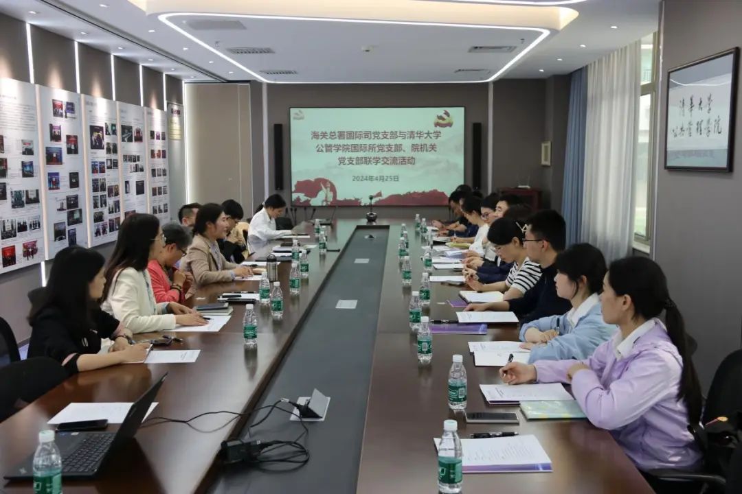 4月25日,海关总署国际司党支部与清华公管学院国际所党支部、机关党支部开展了主题为“在推动新时代高水平对外开放中更好发挥作用”的联学共建活动。本次活动深入探讨了在新时代高水平对外开放背景下,如何更好地促进产学研深度融合,共同服务于国家高水平对外开放的战略部署。公管学院党委副书记兼副院长谢矜、公管学院国际所党支部书记李应博、公管学院国际所所长高宇宁、公管学院党支部副书记张鹏龙、公管学院机关党支部书记、国际合作与交流办公室副主任史姝婷、海关总署国际司党支部青年委员蔡明、国际合作四处副处长江慧欣,以及三个支部的近20名党员参加了此次活动。