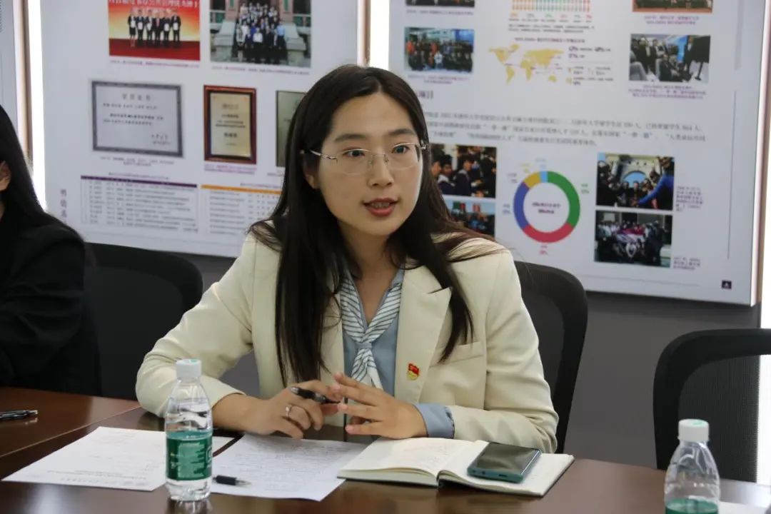 史姝婷介绍了学院机关党支部由学院各行政机关职能部门的骨干职员组成,体现了党的工作在学院中的广泛覆盖。通过将专业知识和实践经验融入到党的工作中,机关党支部能够更好地发挥战斗堡垒作用,推动学院各项事业的发展。她同时介绍道,国际合作与交流办公室的主要工作是对标清华大学的全球战略,促进学院的对外交流与合作,追求高水平的对外开放,同时负责六项全英文国际硕士学位项目的对外联络、招生和学生管理工作。