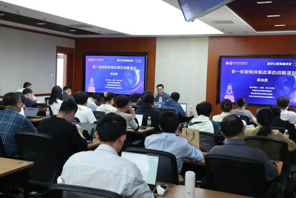5月11日下午,清华公管高端讲堂在清华大学公共管理学院举办。本次讲堂邀请中国社会科学院学部委员、原副院长高培勇教授为大家带来“新一轮财税体制改革的战略谋划”专题演讲,帮助企业家学员们深入解析财税体制的未来发展以及对企业未来布局的挑战与机遇。讲堂由清华大学公共管理学院院长助理沈勇老师主持。