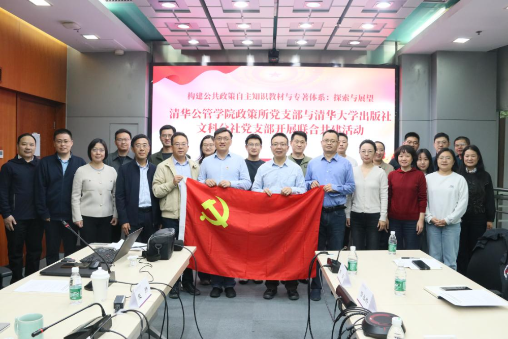 10月16日,清华大学公共管理学院政策所党支部与清华大学出版社文科分社党支部开展“构建公共政策自主知识教材与专著体系:探索与展望”主题联合共建活动。清华大学出版社总编辑卢先和,清华大学出版社文科分社、外语分社社长刘志彬,清华大学出版社文科分社综合业务室主任张伟、党支部书记徐永杰,公管学院党委委员、院长朱旭峰,副院长朱俊明,以及政策所党支部党员、政策所多位教师出席。活动在公管学院302会议室举行,由公管学院政策所党支部书记赵静主持。