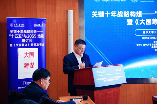 2025年11月17日,由清华大学出版社主办,清华大学习近平新时代中国特色社会主义思想研究院中国式现代化理论研究中心、清华大学国情研究院、观察者网协办的“关键十年战略构想——‘十五五’与2035远景研讨会暨《大国筹谋》新书发布会”在清华大学公共管理学院620会议室举行。