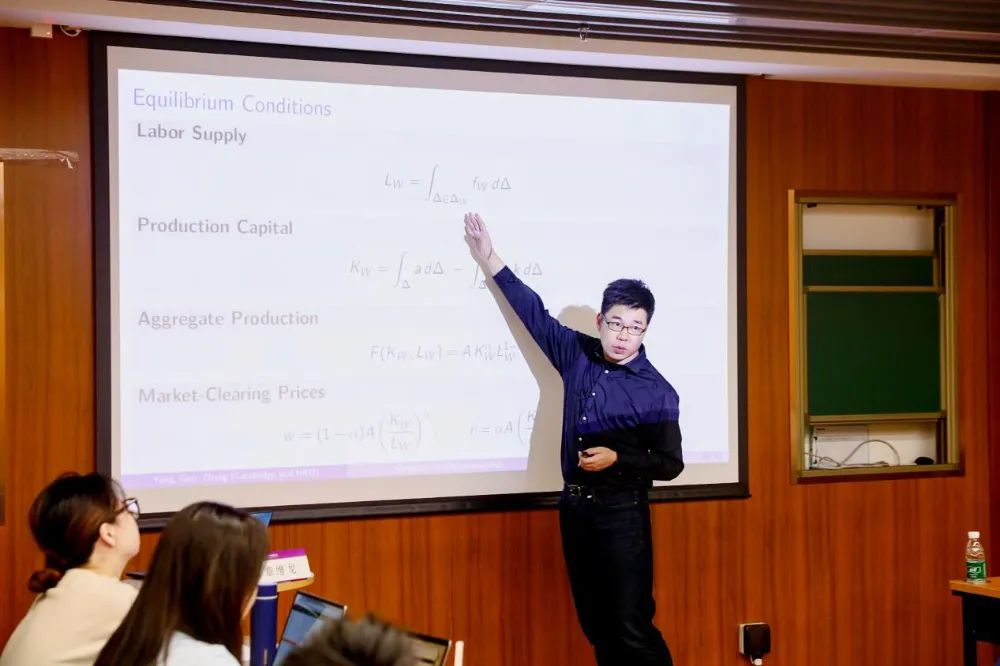 随后,章维龙切入核心研究主题,系统讲解了遗传禀赋对创业行为代际传递的影响机制。他先点明创业领域典型现象——英国93%的私营企业为家族企业,企业家子女创业概率是普通工薪阶层子女的两倍以上,而该代际持续性的驱动因素长期被归于财富资本转移、家庭环境培育,遗传因素的作用却处于 “黑箱” 状态。为破解这一难题,其团队构建世代交叠(OLG)模型,整合遗传可遗传性、先天禀赋后天培育转化、持续性冲击、财富转移四大代际传递渠道,同时借助多基因评分(PGS)技术,将教育成就(EA)与风险偏好(RT)两类遗传禀赋转化为可观测指标,并依托英国UKHLS和NCDS两大数据库,基于近万份样本及数百组亲子配对数据展开分析。讲座中,他还详细解读核心研究发现:一是创业成功为多基因驱动,教育成就多基因评分主要提升创业绩效,风险容忍度多基因评分则通过非金钱偏好推动个体创业;二是忽略遗传异质性会低估4.1%的收入代际弹性和4%的创业代际持续性,还会扭曲结构参数估计,错将遗传因素作用归因于能力冲击持续性;三是信贷约束放松政策虽能降低创业门槛,却会引发 “负向选择”,吸引遗传禀赋边际群体入局,而父母会通过增加人力资本投资形成 “补偿性培育”,对冲这类群体的先天劣势。