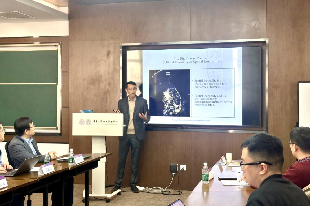 在点评环节,陈济冬、张鹏龙、魏文池、龚璞从国际政治经济学、发展研究、空间分析方法及公共治理等视角,对报告进行了深入评议,围绕财富不平等的测度方式、相关事件数据的适用边界以及研究结论的政策含义等问题,与主讲人展开了进一步讨论,现场交流气氛热烈,学术氛围浓厚。