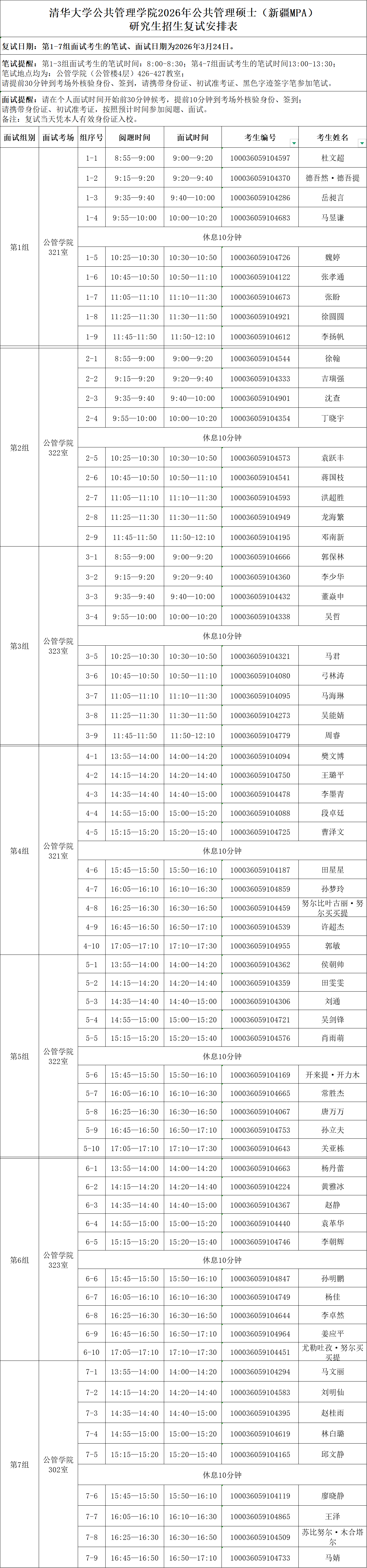 清华大学公共管理学院2026年公共管理硕士(新疆MPA)研究生招生复试安排表